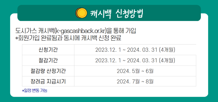 3. 도시가스 절약 캐쉬백 기간 및 신청방법