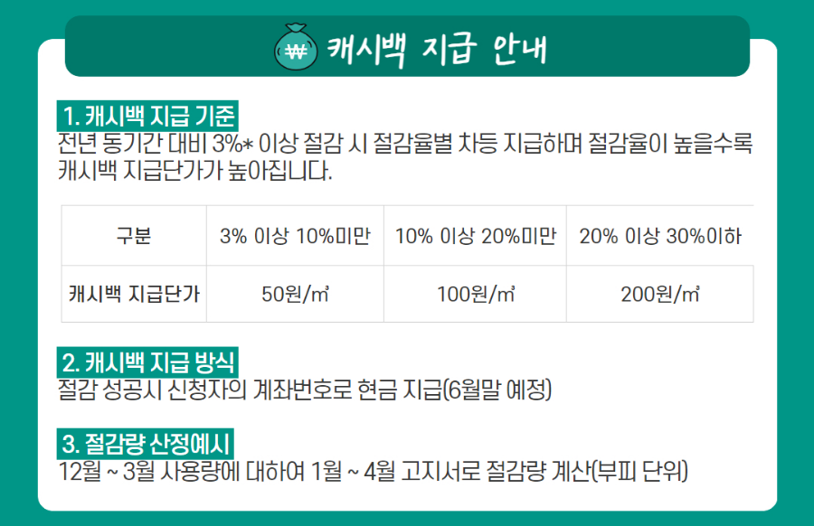 *별도로 신청해야 적용받을 수 있으며 절감률에 따라 캐시백 지급단가는 차등됨*