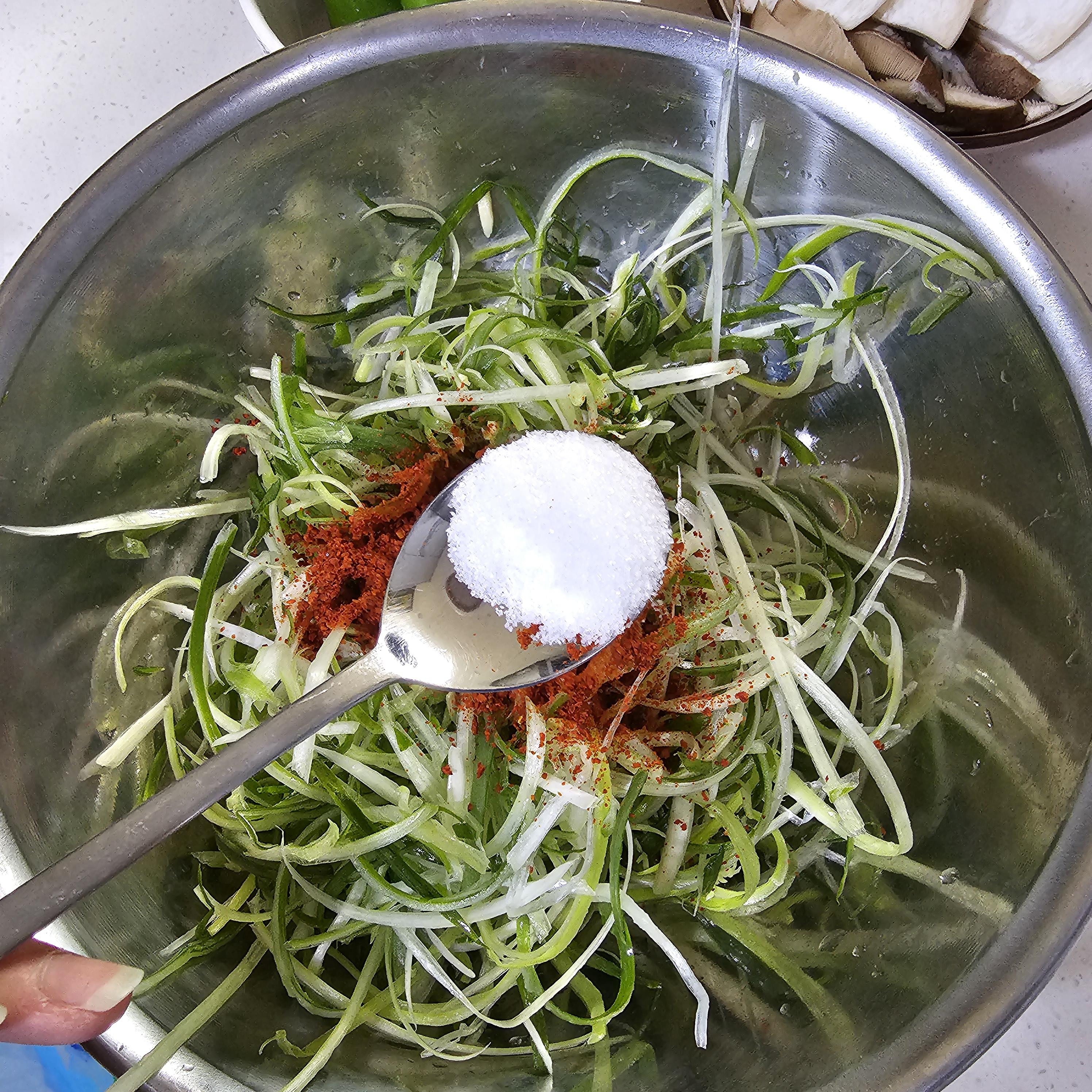 야채 탈수기로 물기를 없앤 후 무쳐주세요.