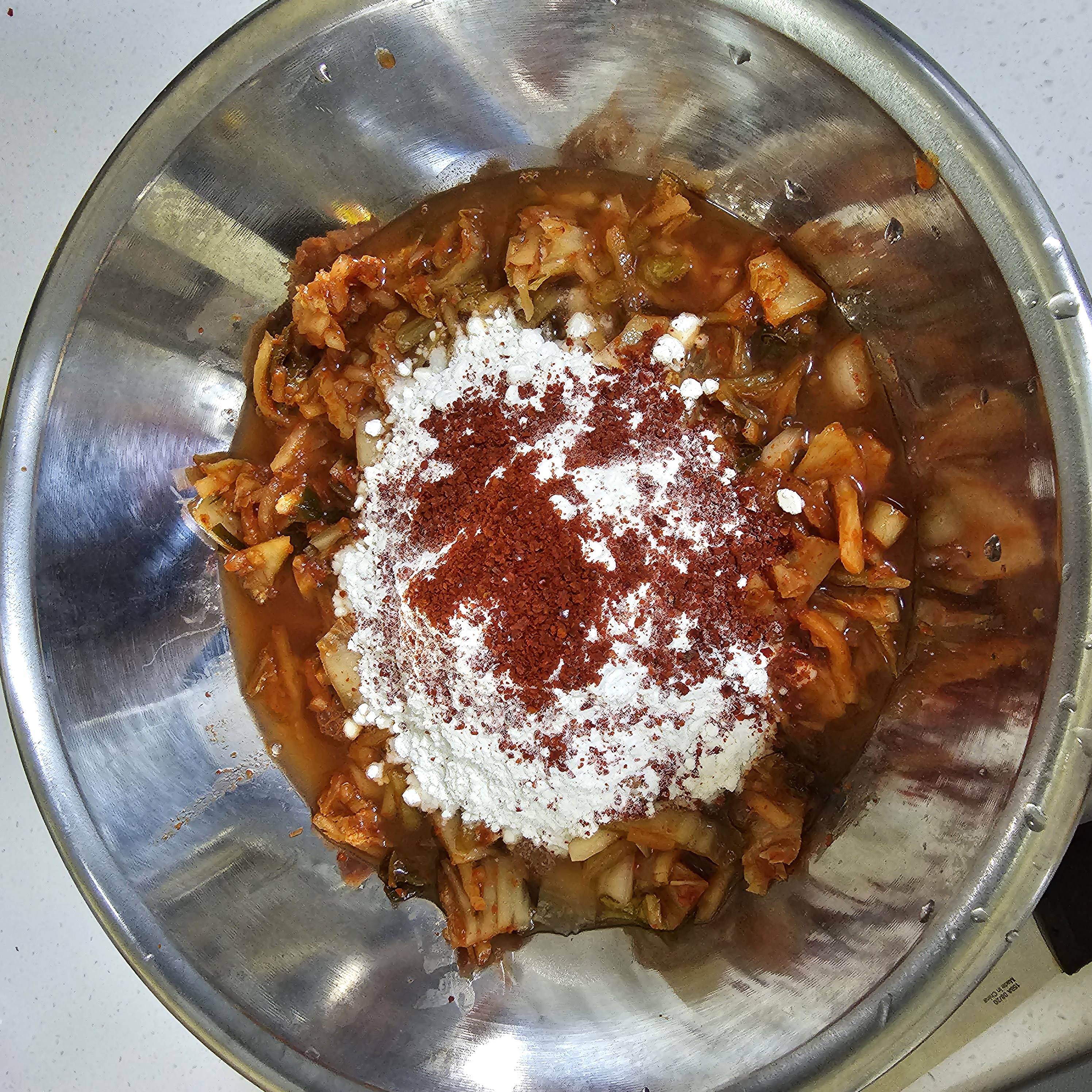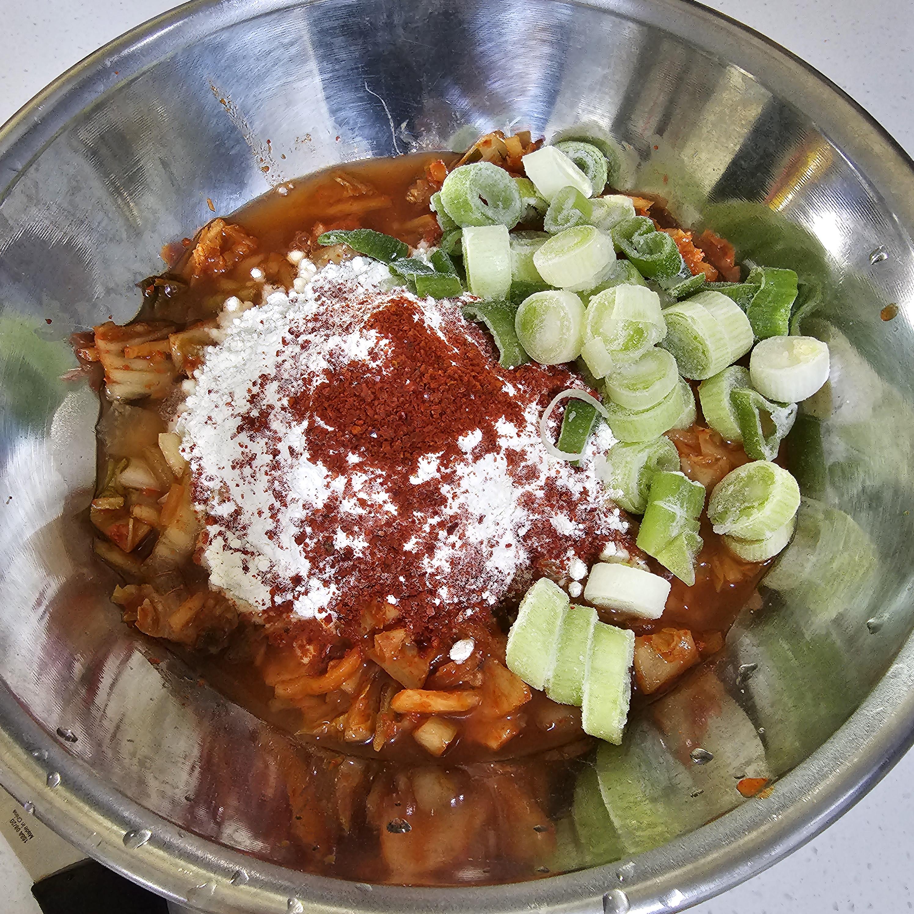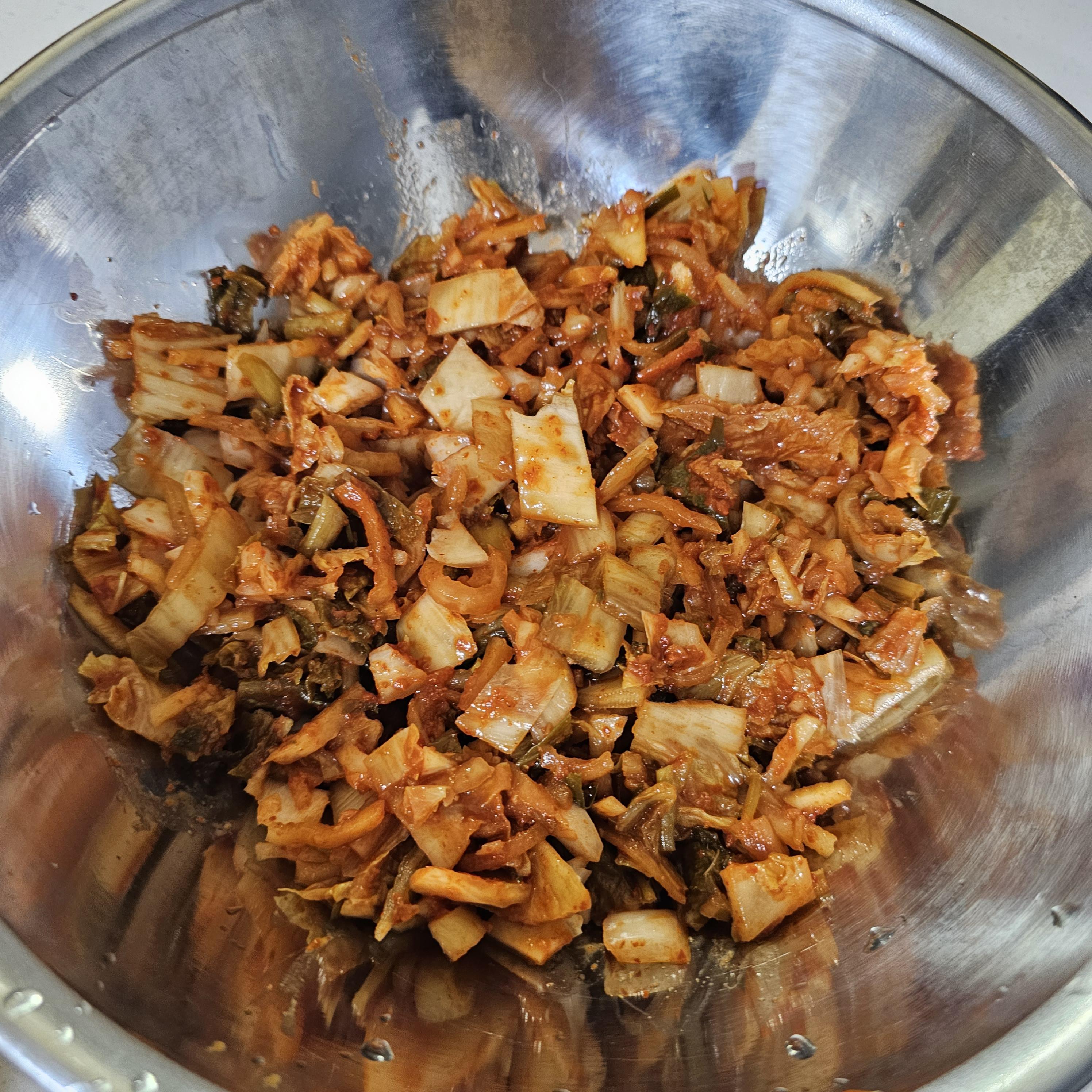 1. 잘 익은 김치를 총총총 썰어서 볼에 준비해 줍니다.