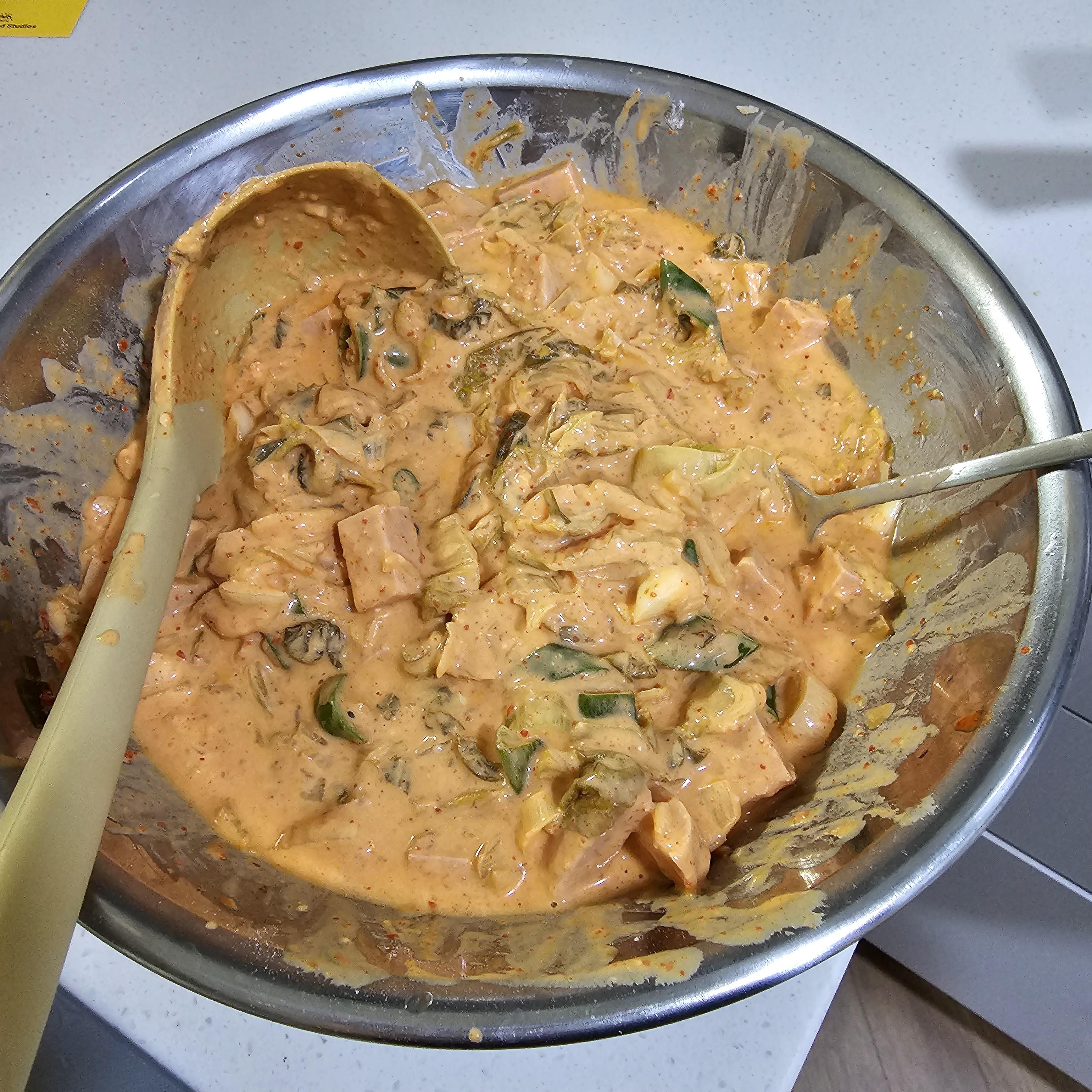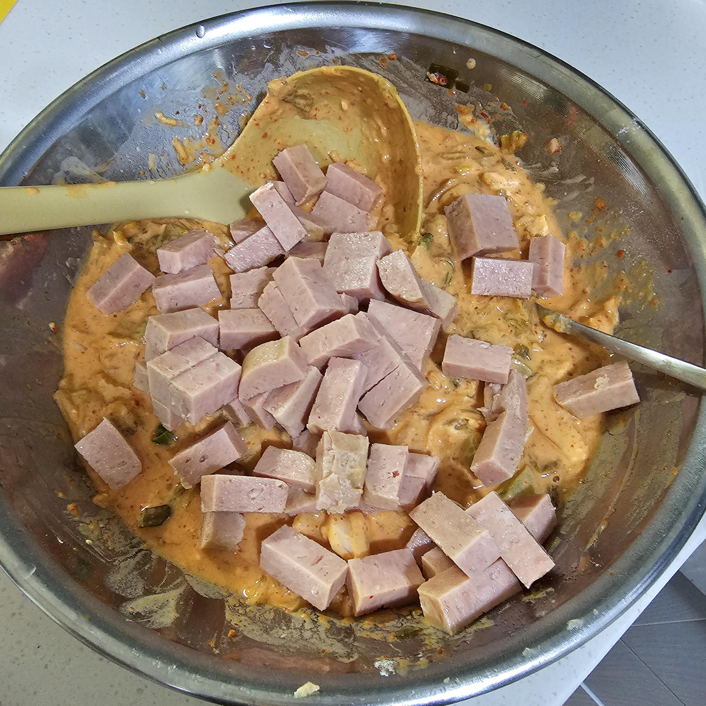 * 참고 : 김치전을 뒤집을 때 불편하니 스팸은 더 잘게 썰어주세요.